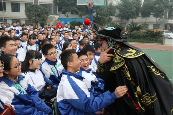学校此次有幸邀请到成都市京剧院院长和众多京剧艺术表演家,为师生们奉献了一出出精彩的京剧表演大戏。其中,武戏《三岔口》片段,通过演员的形体表演和把子的运用,把比武场面展现的生动风趣;新编京剧唱段《落梅吟》,把传统京剧与现代京剧的演唱精髓呈现给大家,让师生充分感受到了京剧这一国家非物质文化遗产的独特艺术魅力。京剧院的表演艺术家们在舞台上充分展现了戏曲演员唱、做、念、打的深厚基本功,给中国传统戏曲文化作了极佳诠释。随后,学生们也带来了传统歌曲合唱表演,以及学校编排的川剧原创歌舞《游子吟》。演出结束后,表演艺术家们同师生分享了自己的艺术成长经历,并呼吁同学们学习并传承京剧艺术,让艺术点亮人生。