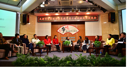 区教培中心相关同志首先回顾了2015年中小学媒介素养骨干教师研修班培训工作开展情况,并就媒介与信息素养课程的定义,课程形式创新,课程分类等方面进行介绍。金牛区首批12所中小学生媒介素养教育试点学校分别就各自的课题成果进行现场交流。