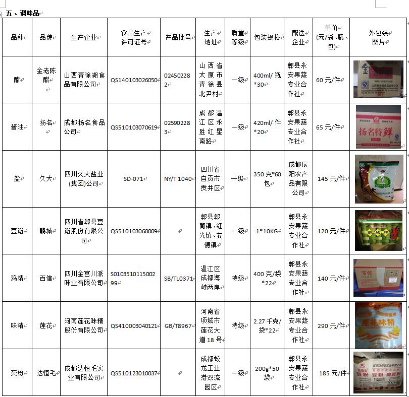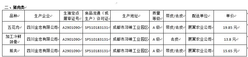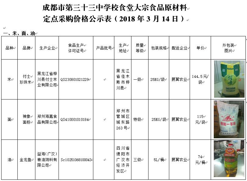 2018年3月14日成都三十三中大宗食品采购价格公示