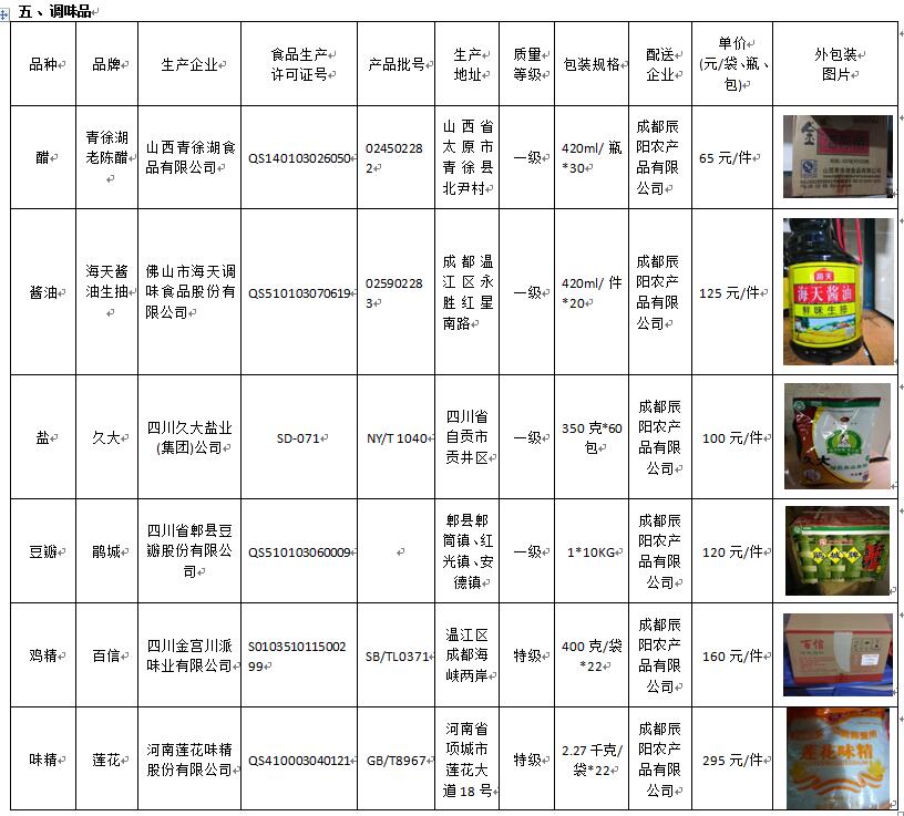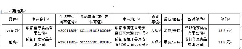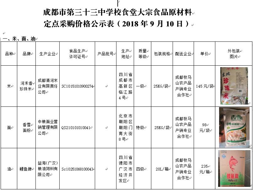 2018年9月10日成都三十三中大宗食品采购价格公示
