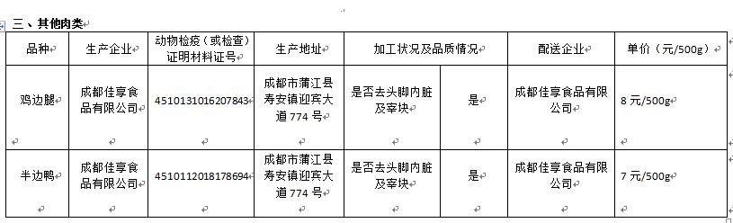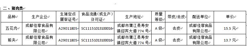 2018年10月10日成都三十三中大宗食品采购价格公示