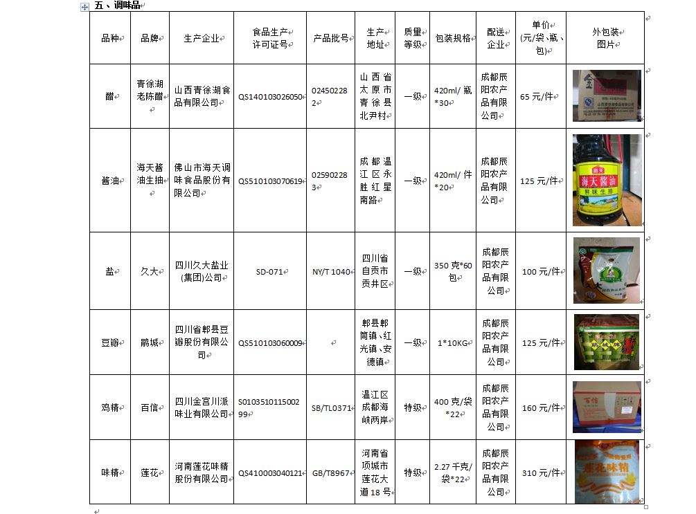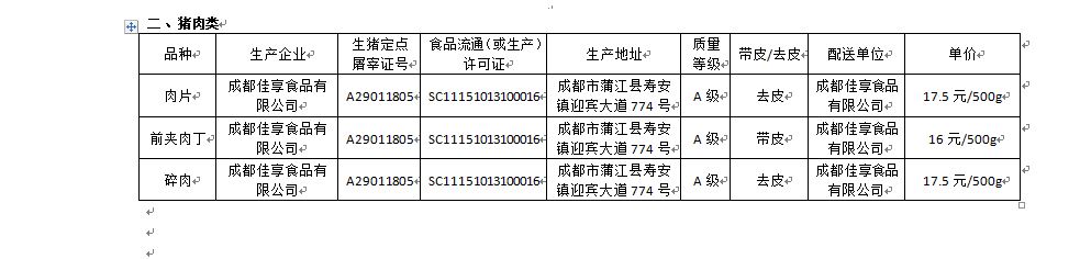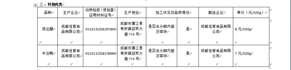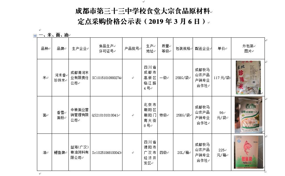 2019年3月6日成都三十三中大宗食品采购价格公示