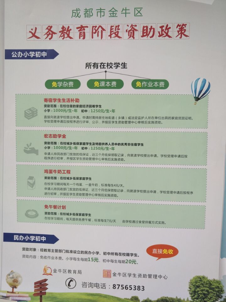 成都市金牛区义务教育段学生教育资助政策宣传海报