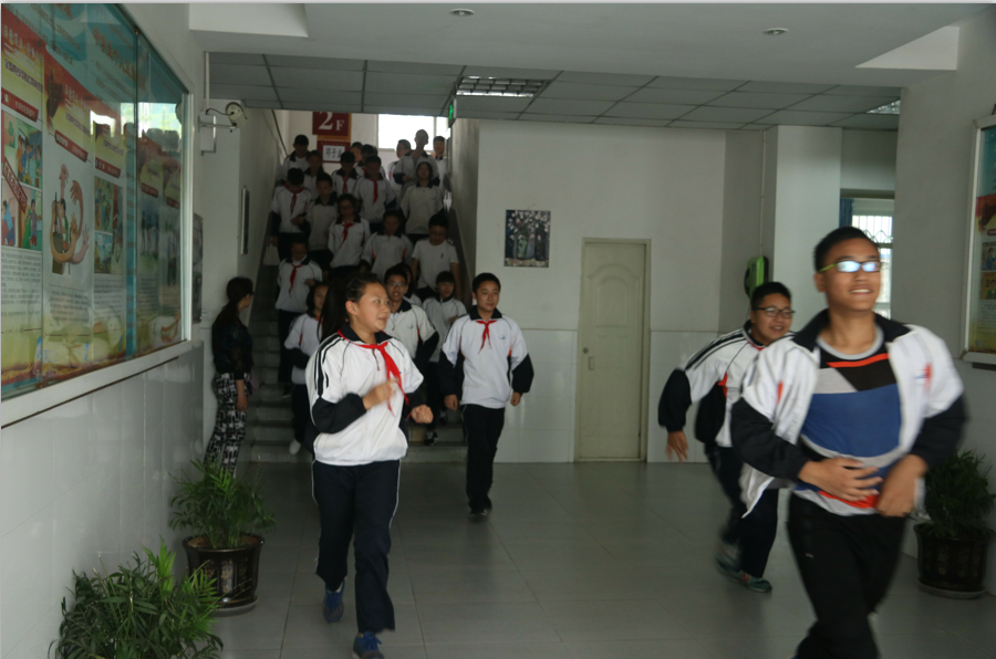 为了进一步加强和规范学校的安全教育管理工作,在全面普及防震减灾知识,提高师生的安全防范意识,以及自护、自救、互救能力,使全校师生在破坏性地震发生时能做到沉着冷静、迅速有序地实施紧急避震疏散,保障生命安全,建设平安校园。2017年5月10日上午,我校组织了地震(火灾)应急疏散演练。本次演练全校师生严格按照应急疏散程序,从就地避险、楼道撤离、有序进入避险场地,做到了快速、有序和安全。演练活动取得圆满成功,学校安全工作重于泰山,要做到“防患于未然,警钟长鸣”!