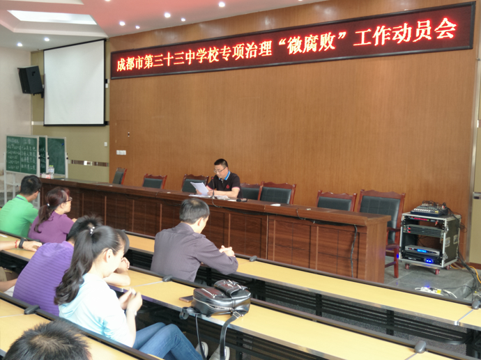 2017年5月23日,我校召开专项治理“微腐败”动员部署工作会。会议传达了全区“微腐败”专项治理动员部署会精神,安排部署了教育系统的“微腐败”专项治理工作。全体教职工参加会议,会议由我校党支部书记刘燕东主持。