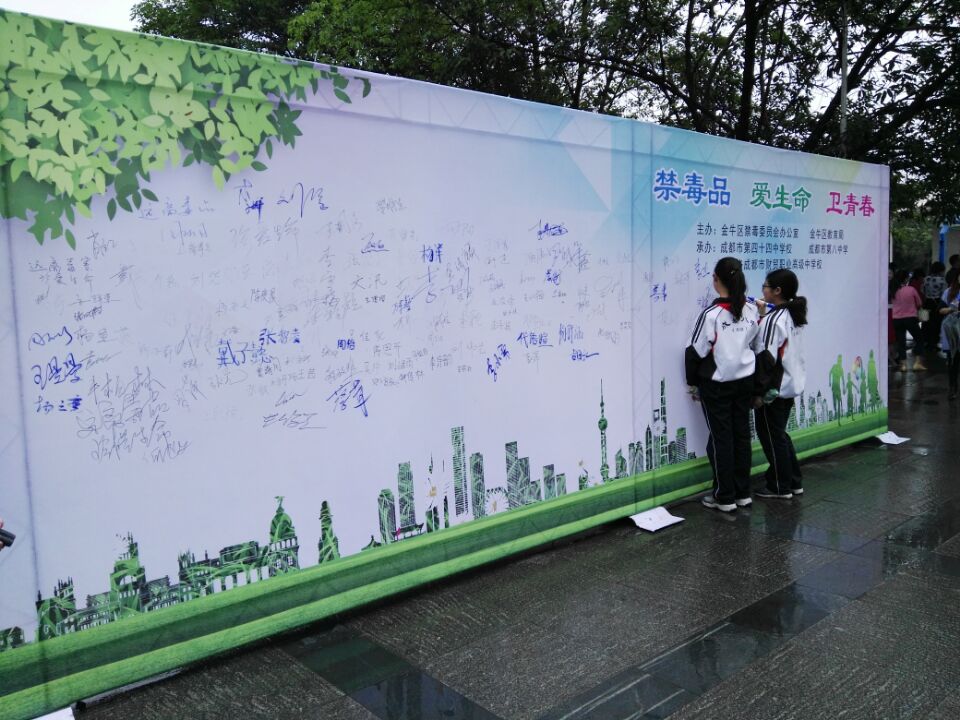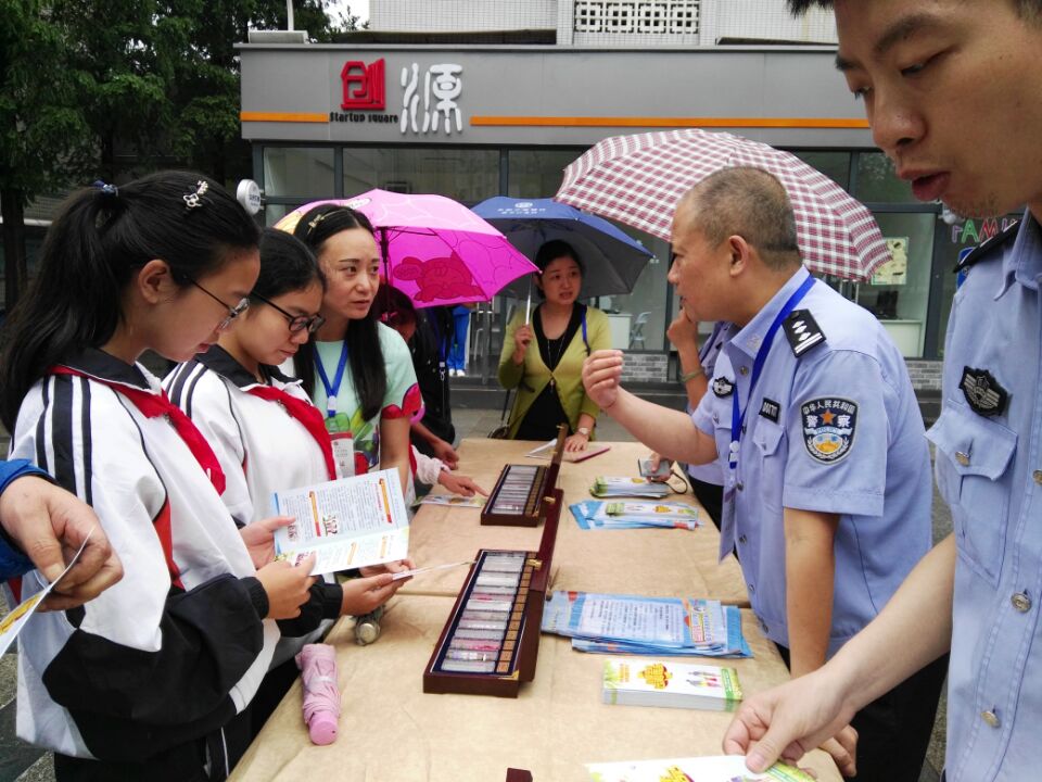 为进一步加强全区青少年毒品预防教育工作,有效遏制毒品滥用问题在青少年群体中发展蔓延。2017年6月15日,2017年金牛区中小学禁毒宣传教育活动在洞子口职中举行。金牛区禁毒办副主任、区政法委副书记、区综治办主任罗能华、四川省公安厅禁毒缉毒总队预防教育支队教导员徐布一、区教育局局长文贤代、副局长姚才,还有各成员单位、金牛公安分局、金牛区各中小学、金牛区各街道办事处相关负责人参加活动。我校分管禁毒教育工作的副校长陈晓静,德体卫艺办公室主任许军以及我校部分学生代表参加了此次活动。