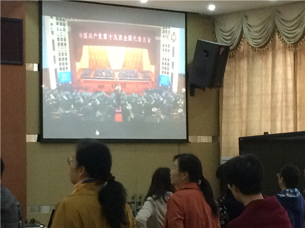 2017年10月18日,成都市第三十三中学校召集全校教职员工在阶梯教室观看中国共产党第十九次全国代表大会开幕会,认真聆听习近平代表十八届中央委员会向大会所作报告。报告鼓舞人心,我们有理由相信,在伟大、光荣、正确的中国共产党的领导下,人民的生活将更加美好,祖国将更加强大!我们将不忘初心,牢记使命,对党忠诚,永远跟党走!