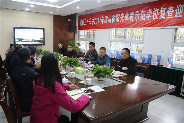 2017年11月21日,四川省教育厅“省阳光体育示范校”复查工作小组的专家莅临我校,对我校近四年来阳光体育活动的开展进行复查,区教育局调研员刘国模、德体卫办副科长李从伟、区教培中心体育教研员等一行陪同检查。