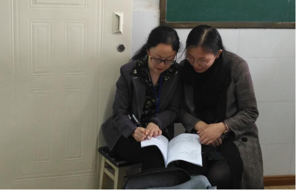 课后和巨颖老师就本堂课的教学进行了深入交流,何督学肯定了巨颖老师课堂上关注学生个体,关注知识过手,重视学生数学学习习惯养成的做法,同时也对课堂如何引导学生纠错提出了中肯的教学建议。