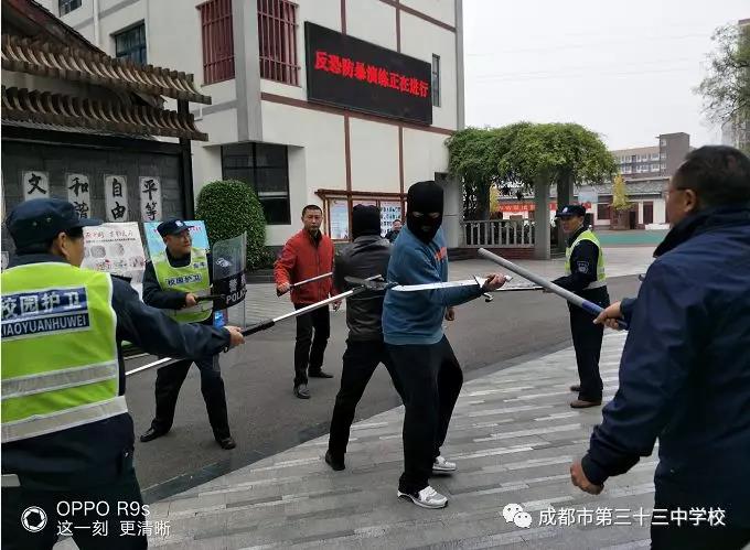 为确保校园安全,加强在校人员安全防范意识,我校于2018年11月15日。上午进行了反恐防暴实战演练,演练开始前,我校对全体师生召开了专门的培训,并制定了面对暴徒时的紧急应对计划,做到了分工明确,责任到位。