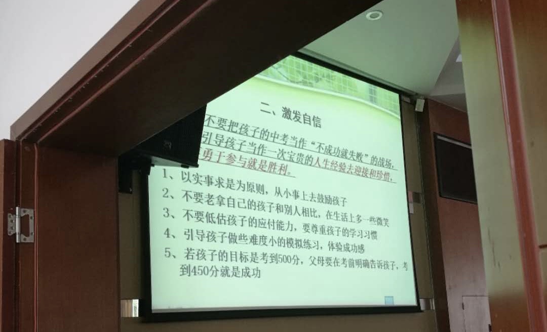 邀请到的梁坚老师主讲,九年级全体学生家长聆听了此次讲座。
