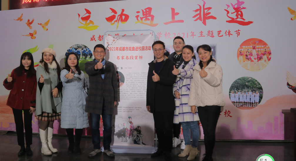 我校作为成都市川剧艺术特色学校,曾多次登上四川电视台、成都电视台等各大媒体网络平台,从而广为人知,被大家津津乐道。今年我校“非遗遇上运动”艺体节的重头戏之一就是戏曲进校园名家名段赏析活动。