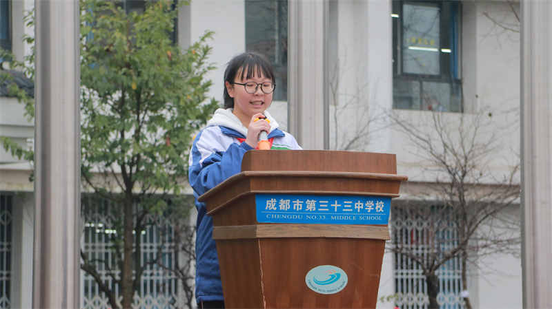 我校学生会副主席李欣忆同学代表全体同学发言,她怀揣新学期在“三三”校园的憧憬和梦想,向全体同学发出践行踔厉奋发、笃行不怠精神的倡议。