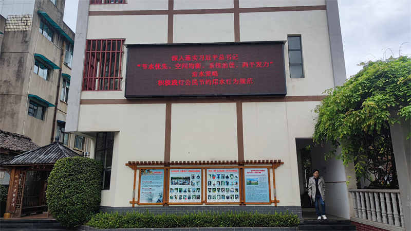 节水爱水,氛围是首要。学校实验楼外LED上滚动播放标语,展示相关水资源图片及视频,吸引学生驻足,了解我国水资源现状,也进一步营造了“世界水日”“中国水周”的宣传氛围。