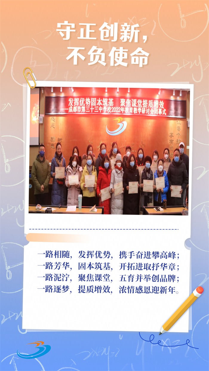 发表时间:2023-1-6 10:51:37 来源:成都市第三十三中学校 编辑:成都铁中红旗校区