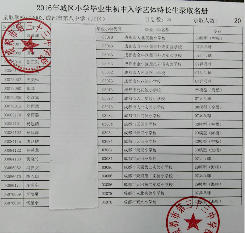 我校2016年体育特长生录取名单公示