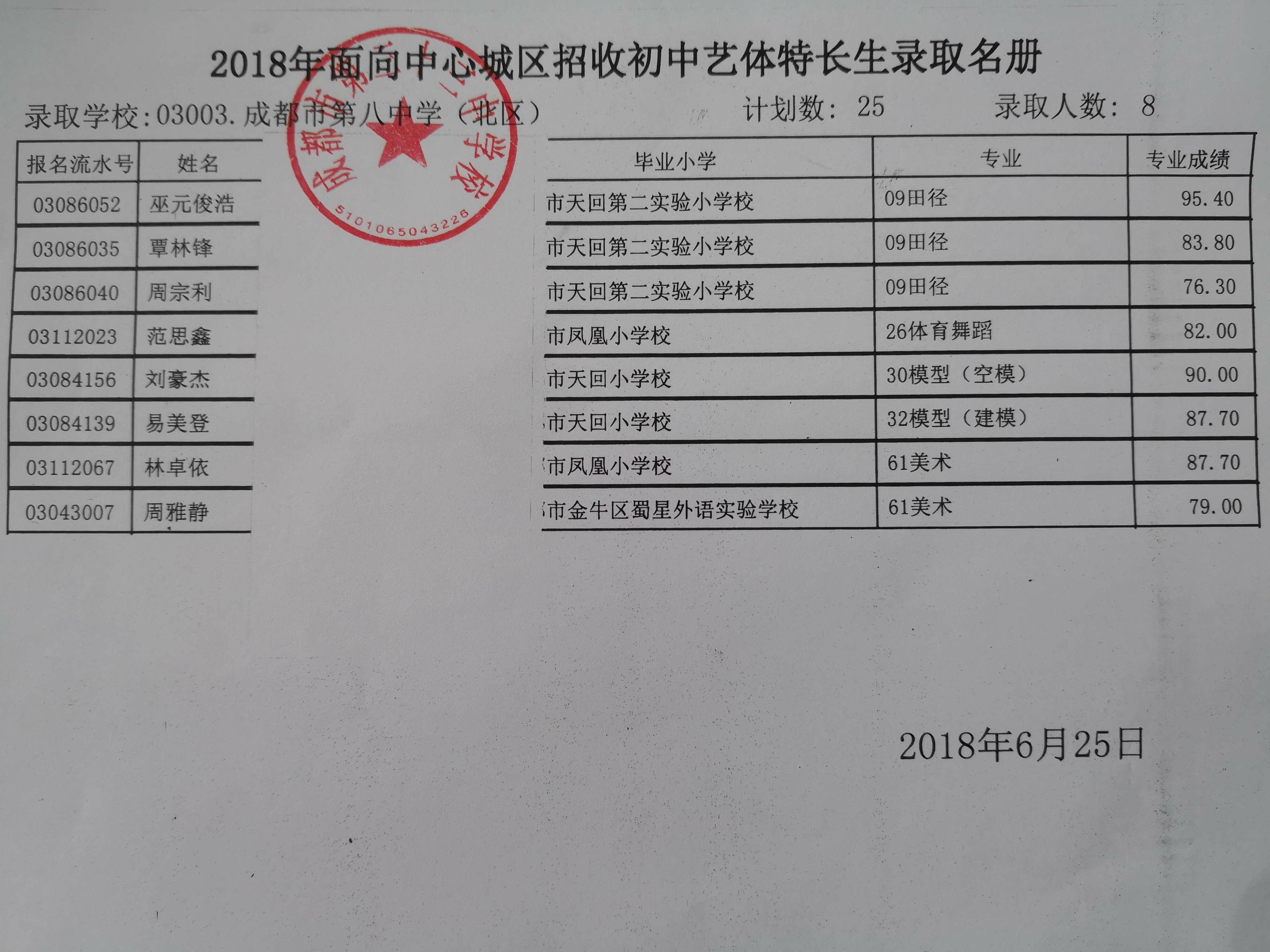 成都市第三十三中学校2018年艺体特长生招生录取名单公示