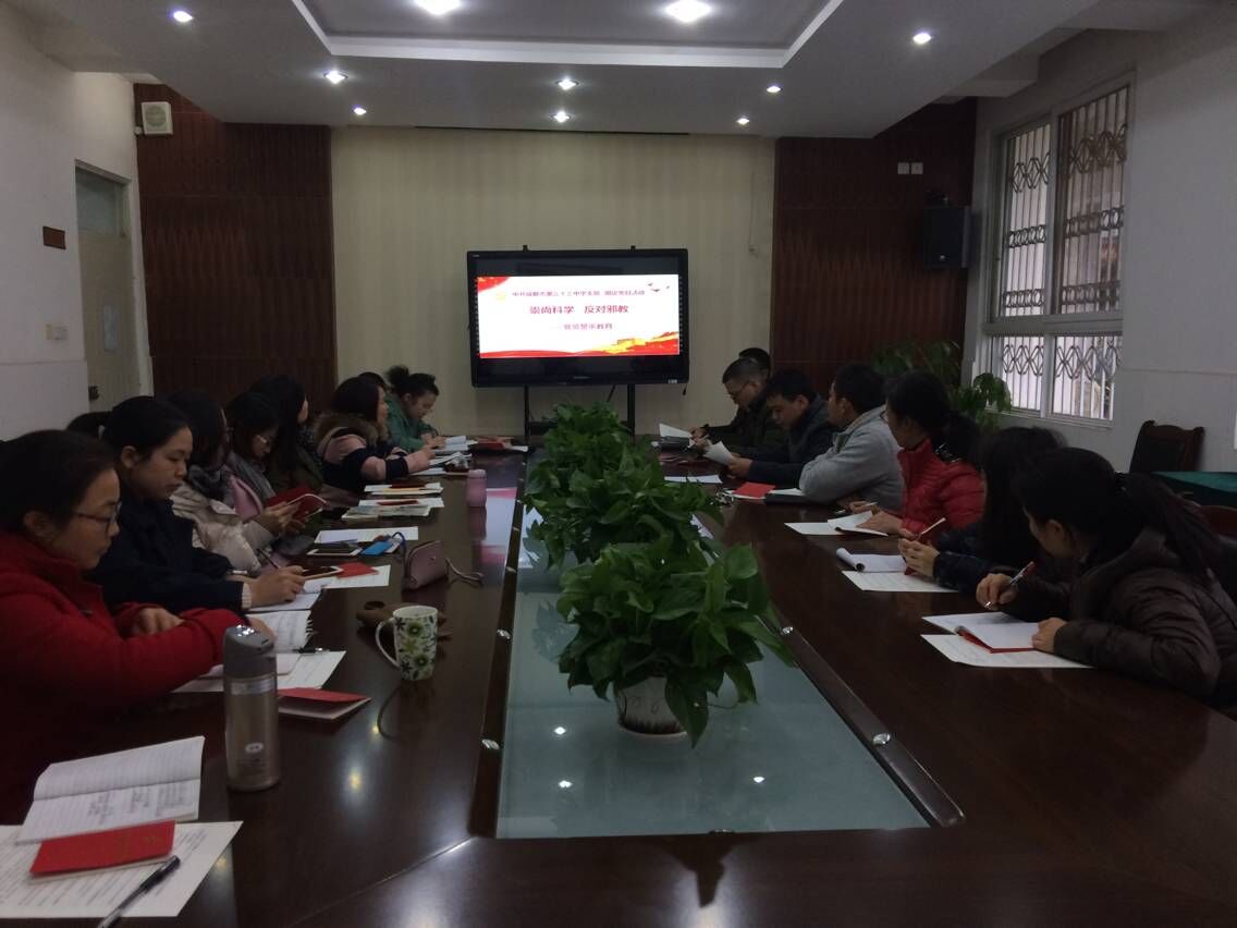2017年12月5日,我校全体在职党员集中党员活动室过了一次别开生面的组织生活。支部书记刘燕东同志结合学校中心工作和教师实际,深入浅出的为党员同志们上了一堂学习贯彻十九大精神的党课。