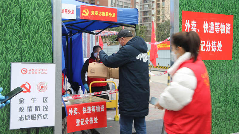 驷马桥街道高笋塘社区党委副书记彭容同志等在小区外围接受了慰问。倍感温暖和鼓舞的同时,彭书记也代表社区抗疫工作人员感谢学校全体师生的贴心慰问和真切关怀。