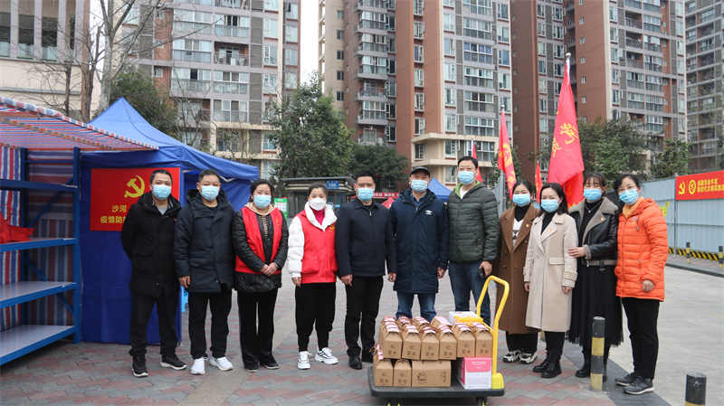 2022年3月4日,成都市第三十三中学校支部书记、校长雷志挺同志带领部分党员代表学校党政工团和师生员工慰问了沙河·云景湾小区疫情防控第一线的社区工作人员和志愿者,对他们无私奉献的抗疫精神致以崇高敬意。