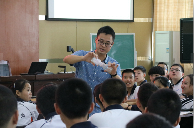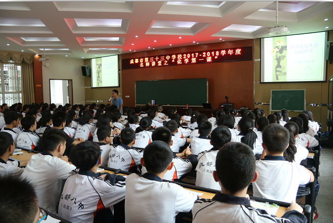 新学期开学了,我们初三年级的同学们迎来了一门新的学科——化学。为了让同学们对这门新的学科有一个初步的认识,培养他们学习的兴趣,学校“名师讲堂之化学第一课”在阶梯教室开讲啦!我校金牛区优秀的青年教师、四川省课博会赛课特等奖王逸之老师给同学们来了一次别开生面的视听盛宴。从学科特色的介绍到基本常识的问答,从贴近生活的化学小视频到趣味横生的小实验。从生活中的化学到实验室的化学课,从化学物质的幽默记忆法到化合价的说唱片段,同学们的眼光一直聚焦在王老师身上,无不流露出对未来一年的化学学习的渴望。