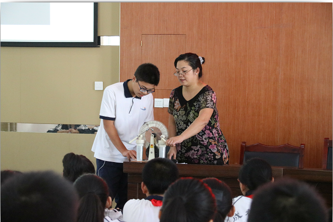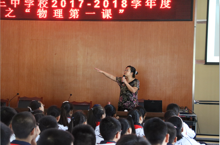 新学期开学了,我们初二年级的同学们迎来了一门新的学科——物理。为了让同学们对这门新的学科有一个初步的认识,培养他们学习的兴趣,继化学学法指导之后,学校“名师讲堂之物理第一课”也在阶梯教室开讲啦!我校四川省骨干教师、“川派”名师秦霞老师用她幽默的风格给同学们来了一次亲密接触。从伟大的牛顿聊到登月的杨利伟,从纳米聊同学到光纤。秦老师既可以用手电筒变出彩虹,也可以用实验器材模拟闪电。们踊跃展示,积极回答,笑声不断。