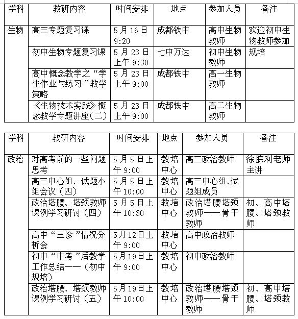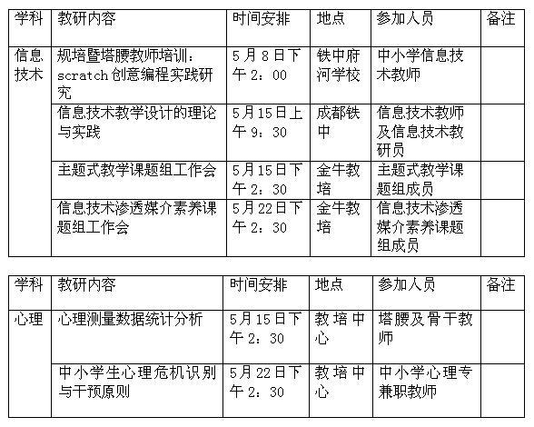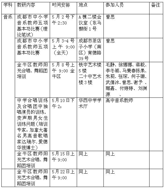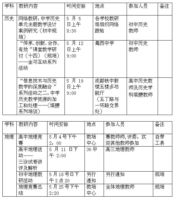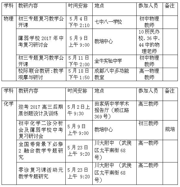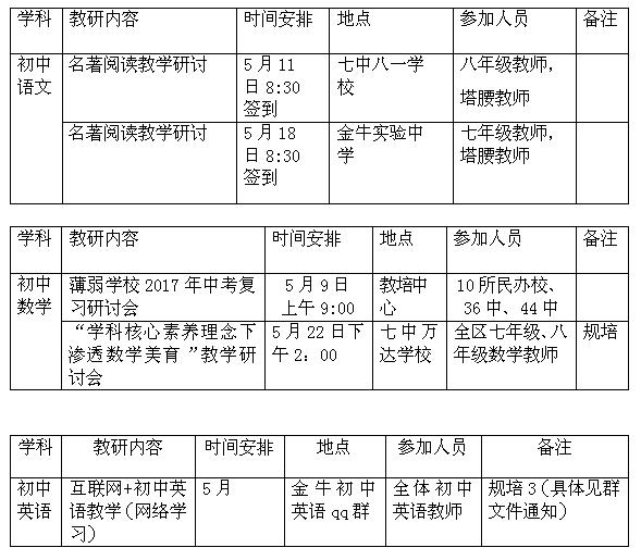金牛2017年5月中学教研活动安排表
