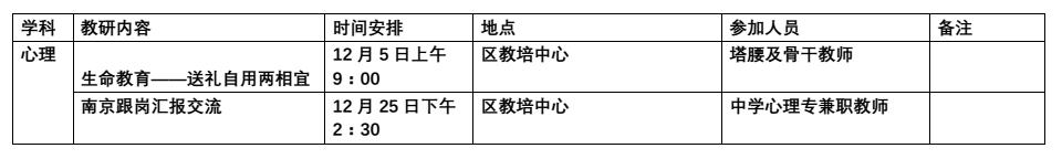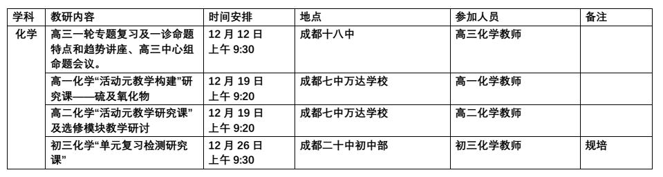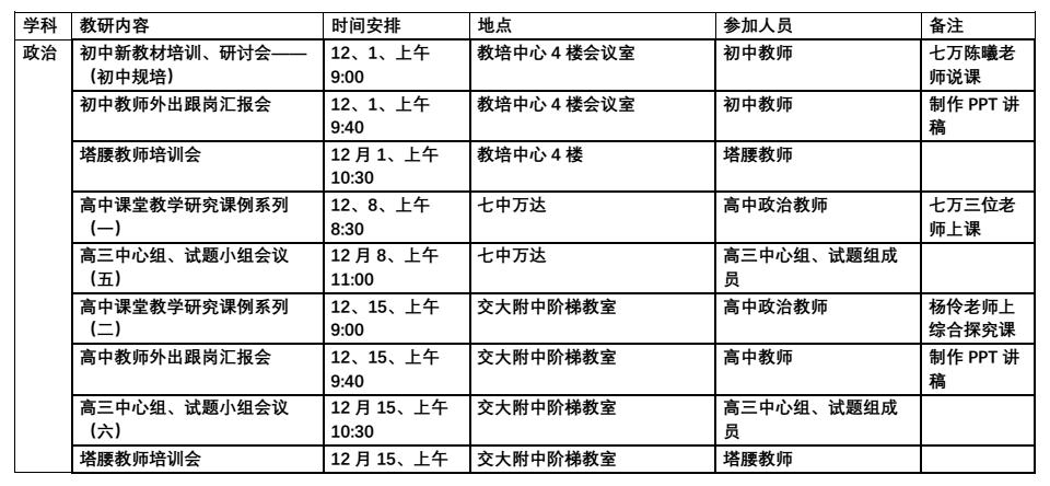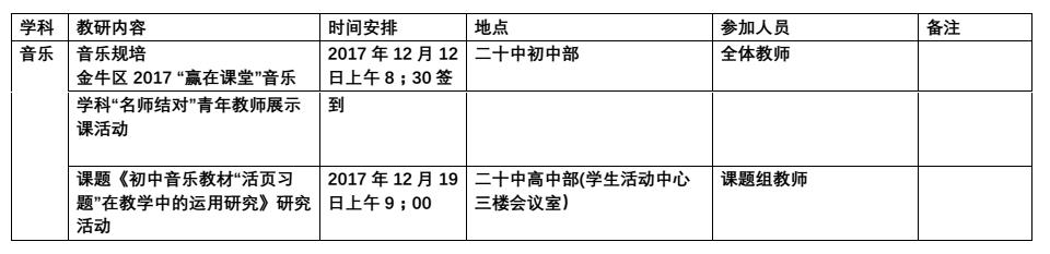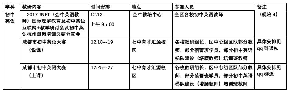 2017年12月教研活动通知