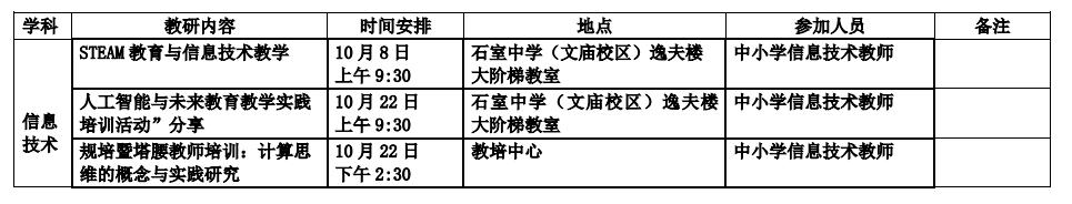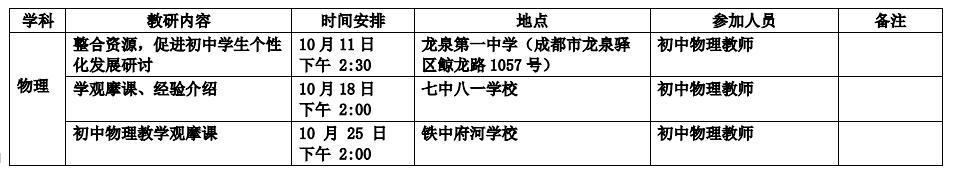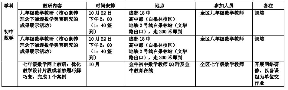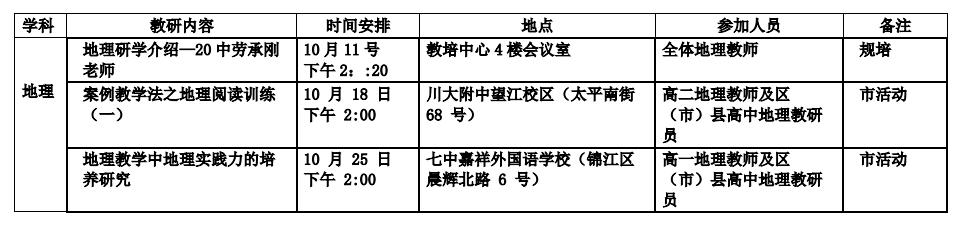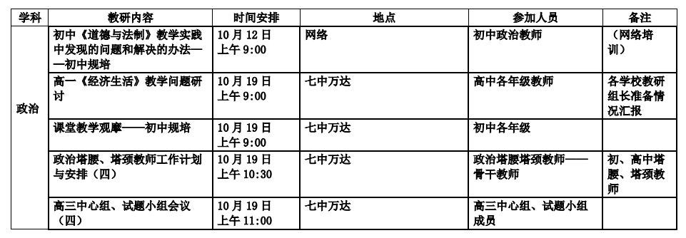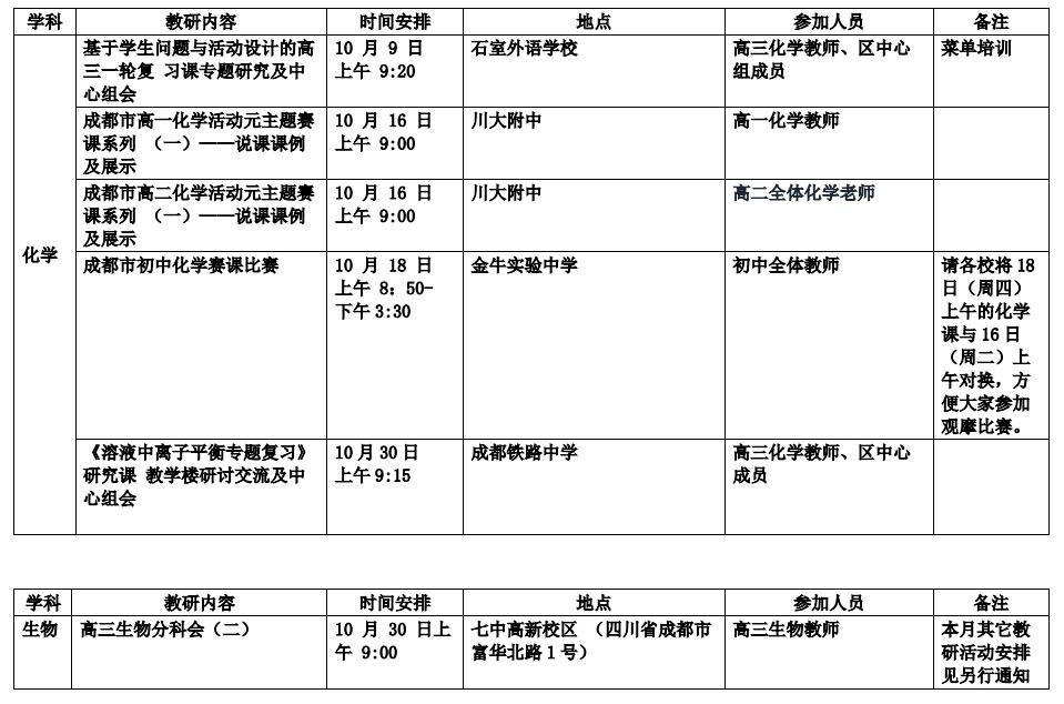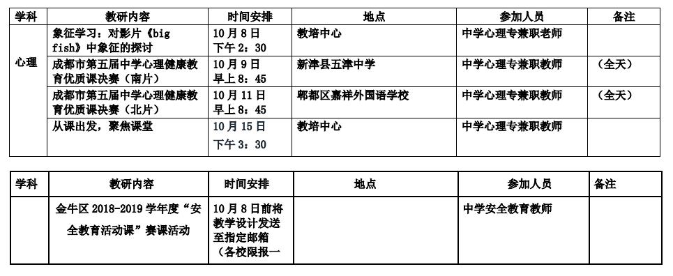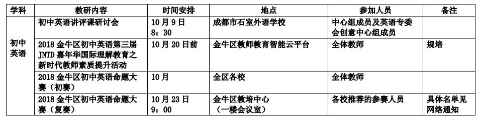 2018年10月教研活动通知