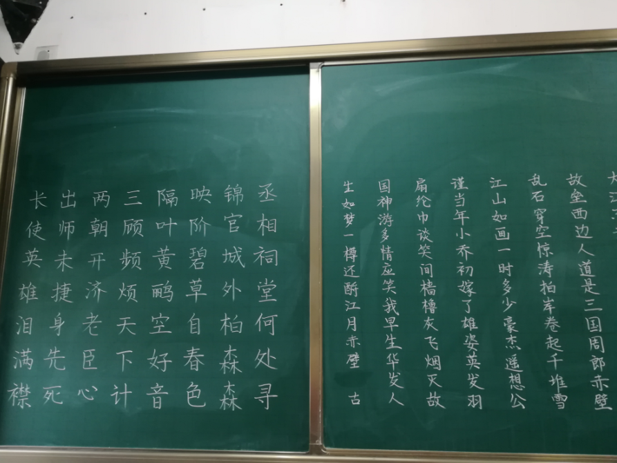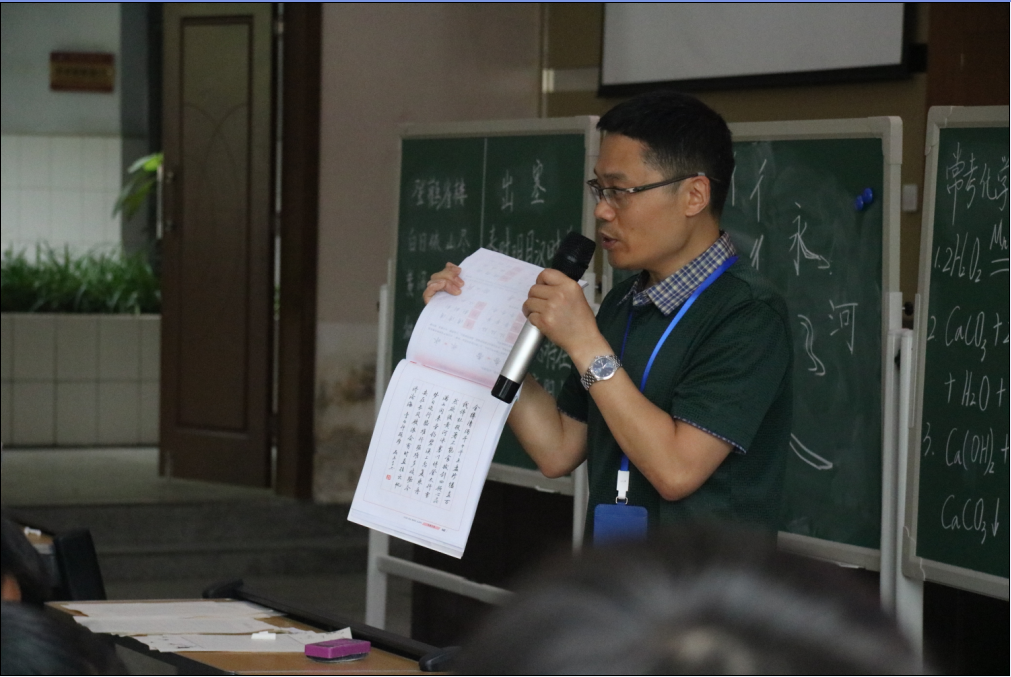 活动邀请到了区教培中心粉笔字指导专家杨关键老师,他结合自己书写粉笔字的感悟,从粉笔字的正确书写方式、如何把握汉字的间架结构、以及粉笔字基本笔划的书写方法等方面生动阐述了写字教学的有关要求。之后学校青年教师上台展示,带领青年教师们从握笔和运笔、提按和转折、顺承和疏密等方面细心练习,一笔一顿透出的是认真;奋笔疾书尽显的是潇洒。随后,校级粉笔字指导员周琴老师做了《如何写好粉笔字》的指导讲座,具体传授了写好粉笔字的基本技巧,从执笔方法、运笔技法,再到基本笔画的写法、偏旁结构的安排等方面安老师都作了翔实地讲解。