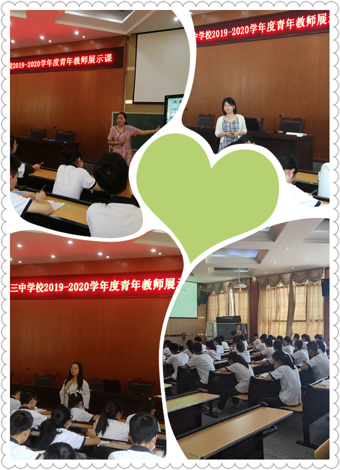 此次展示课活动由各学科的青年教师参加。承担展示课的青年教师有效借助教研组、备课组的集体智慧,精心设计教学流程,在组内进行试讲,试讲课结束后及时总结,认真听取评课教师的意见。课前精心准备,反复斟酌;课中全心投入,激情飞扬;课后认真反思,及时总结。青年教师在专业成长的道路上迈向了新的台阶!