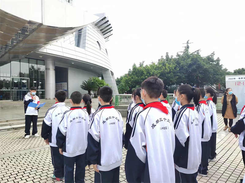 成都市第三十三中学校七年级的同学在校医和班主任的带领下,于2022年10月26日下午一点从学校出发,抵达金牛区青少年活动中心参加禁毒防艾主题教育活动。
