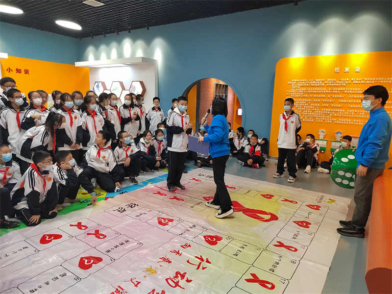 同学们先后在艾滋病预防中心展厅,禁毒展厅自由参观。展厅内有许多艾滋病相关科普知识,还有通过拼图游戏有奖问答活动等趣味方式来对防艾知识进行展示,提高学生兴趣,加深印象。防艾馆参观结束后,工作人员将馆内展示内容进行概括性总结,带领学生了解艾滋病传播方式,同时详细介绍了现代各种新型毒品及其危害,并向同学们展示模具。