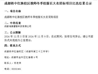 成都铁中红旗校区教师冬季校服长大衣招标项目比选结果公示