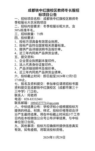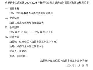 成都铁中红旗校区2024-2025年教师专业能力提升培训项目采购比选结果公示