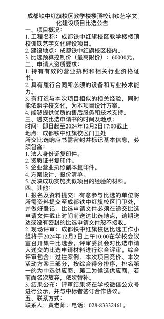 成都铁中红旗校区教学楼楼顶校训铁艺字文化建设项目比选公告