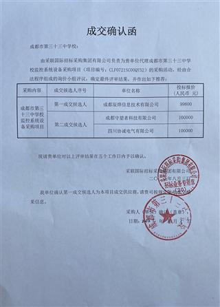 成都市第三十三中学校校服采购中标、成交结果公告