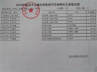 成都市第三十三中学校2018年艺体特长生招生录取名单公示
