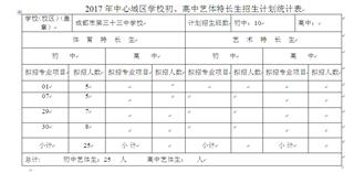 2017年中心城区学校初、高中艺体特长生招生计划统计表