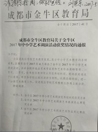 金牛区2017年中小学艺术调演活动我校获奖情况通报