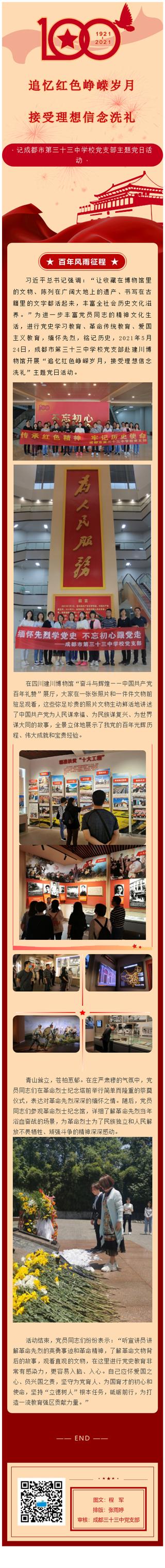 三三•献礼建党100周年系列活动丨赓续奋斗血脉,矢志教育强国——成都三十三中党支部庆祝中国共产党成立100周年系列活动