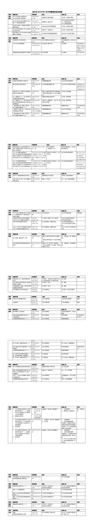 2019年9月教研活动通知